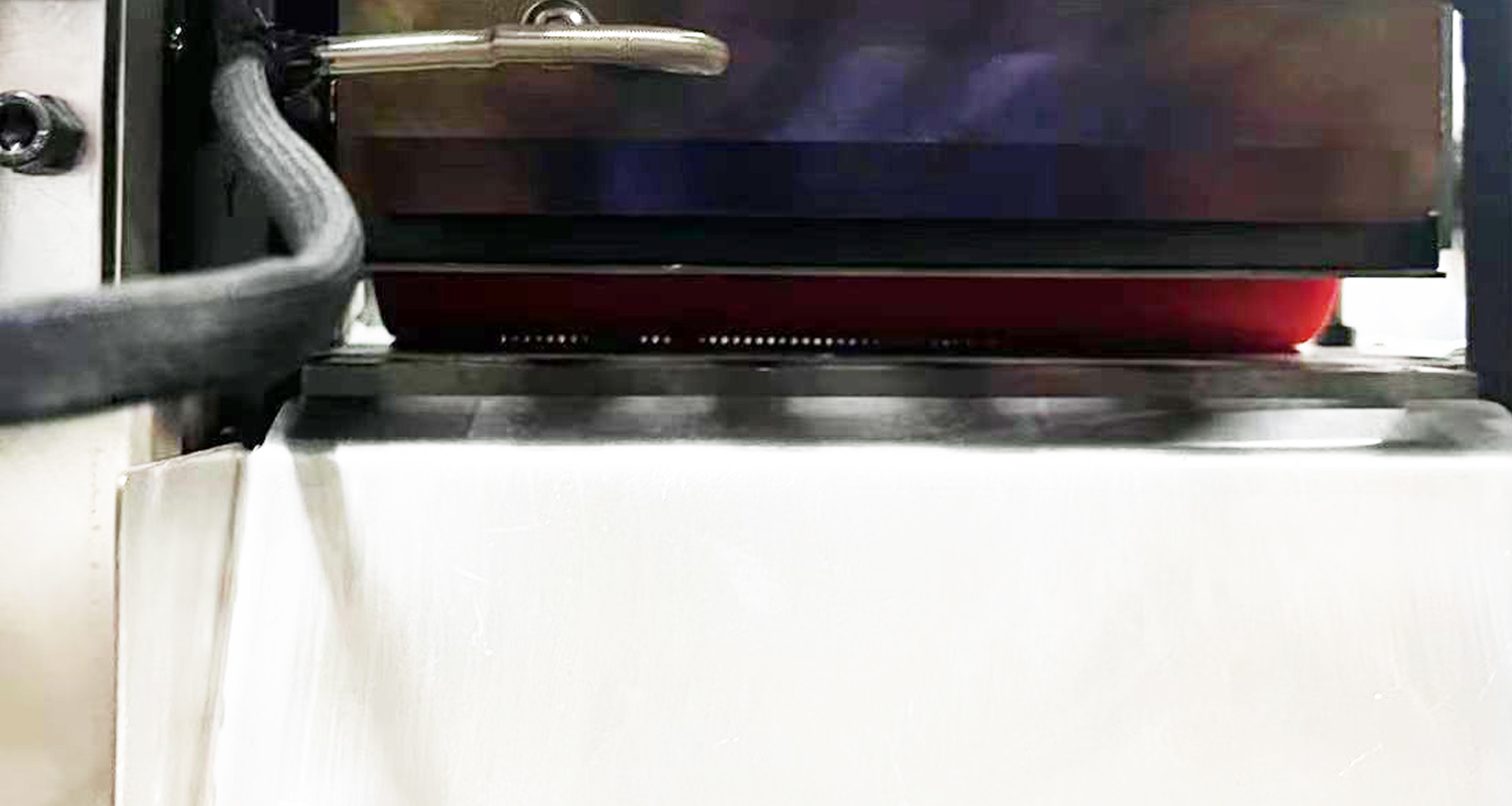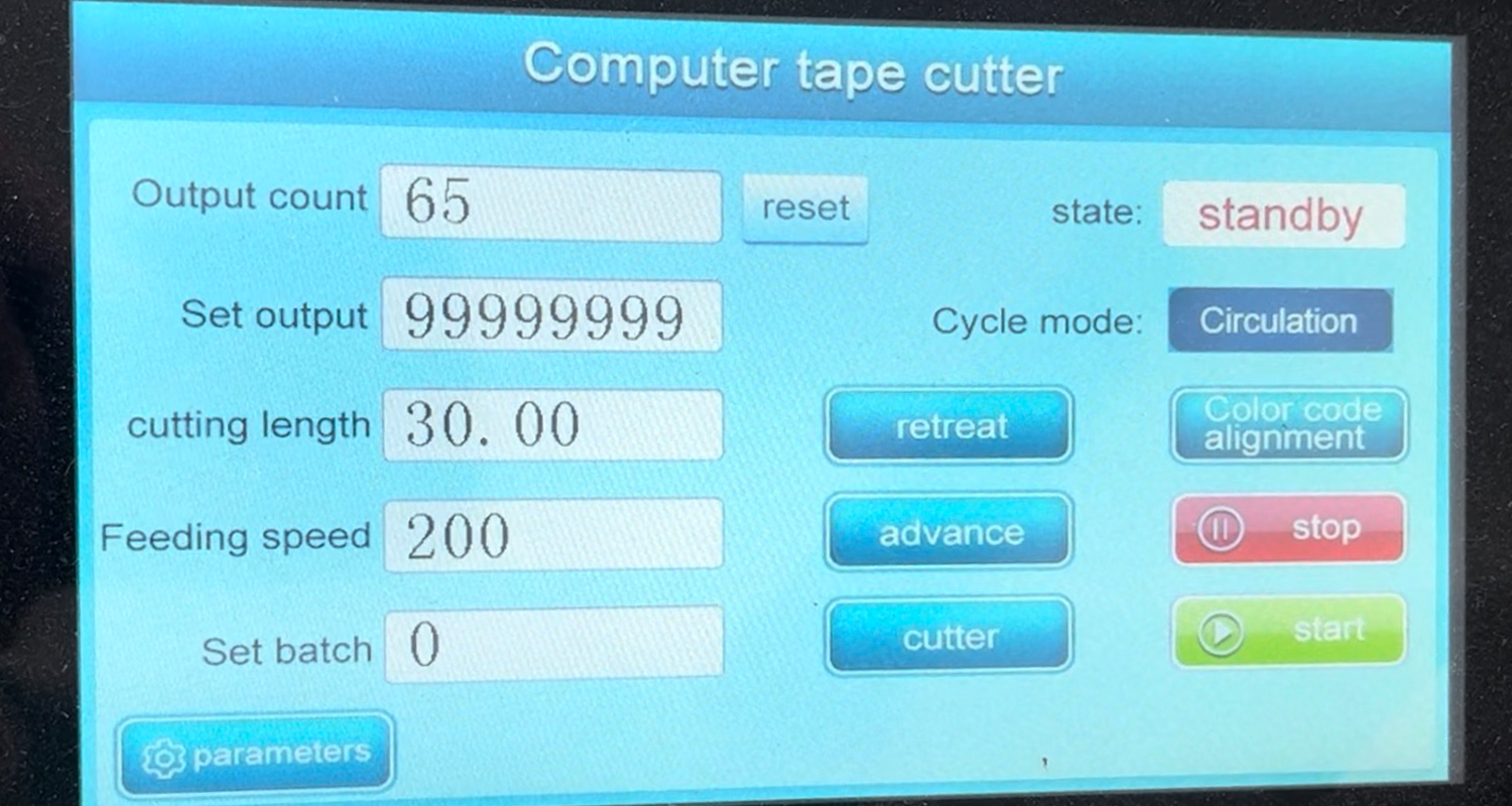 The touchscreen controls the length and speed; if heating is used for cutting, the blade pressing time can be set for better edge sealing.