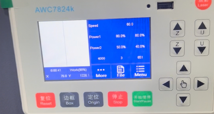 The laser software allows for the design of CAD drawings, supports USB or computer connection to the machine, and can design any shape with a maximum cutting thickness of 3mm and a width of 220mm. The control panel is easy to operate; laser power and cutting speed can be set, and multiple drawings can be uploaded simultaneously, allowing for switching between drawings for production as needed.